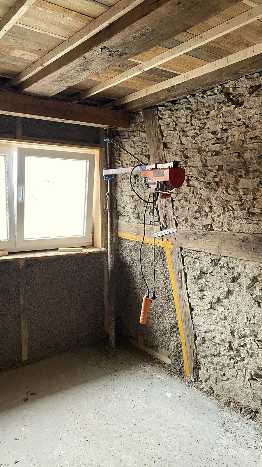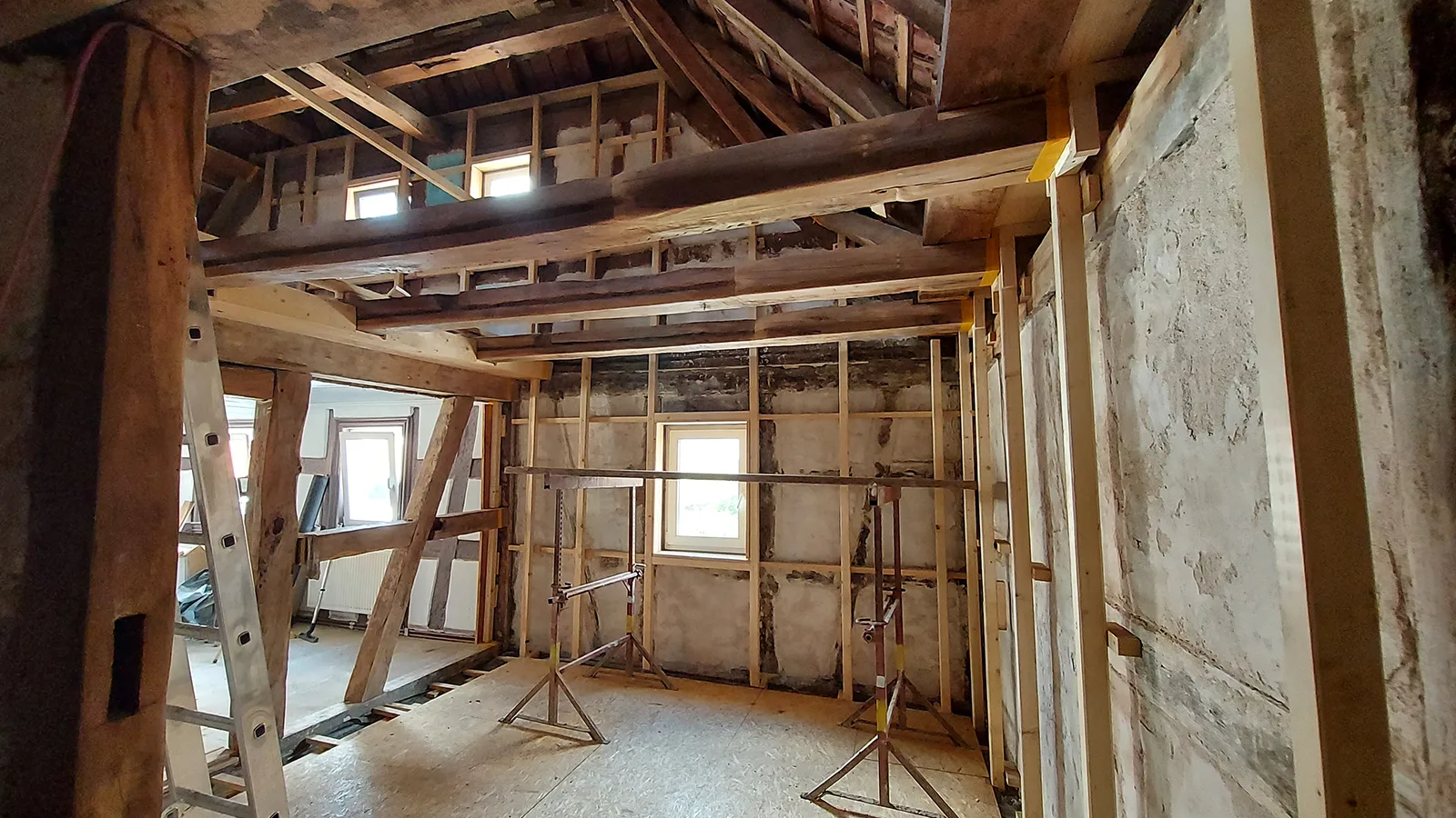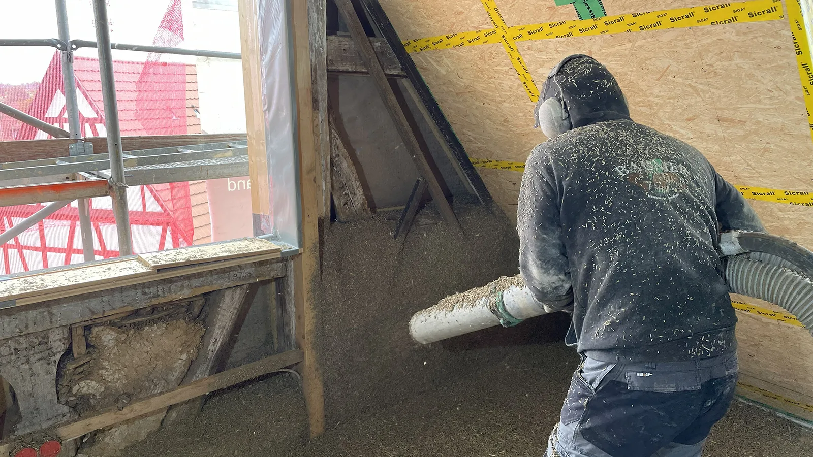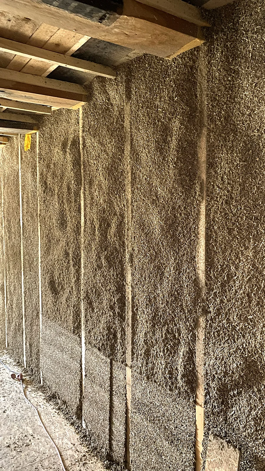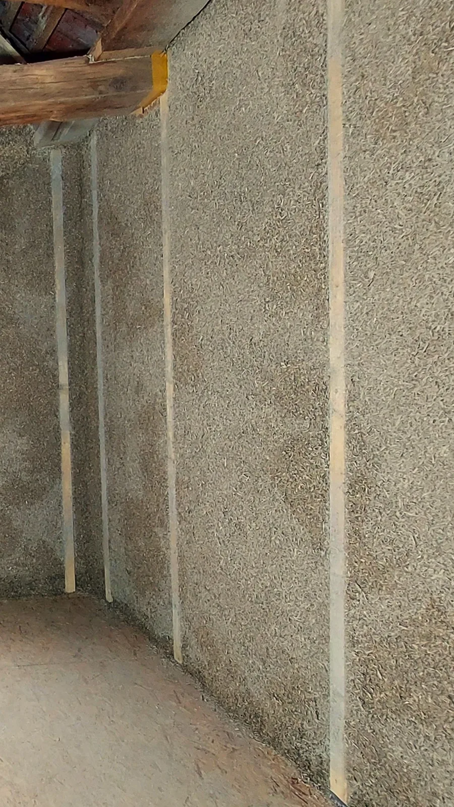 Die Unterkonstruktion im Bestandsgebäude für den gesprühten Hanfkalk.