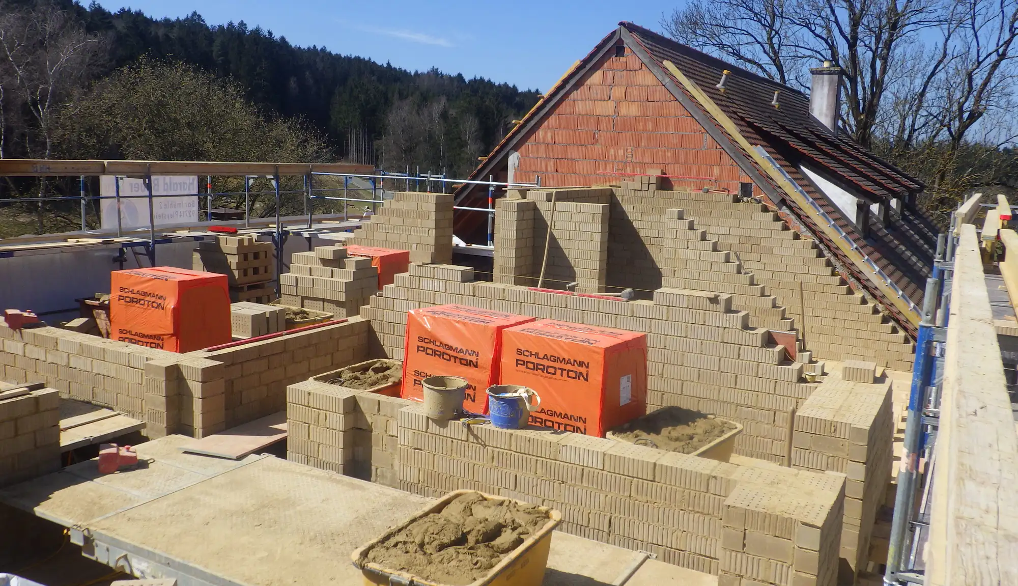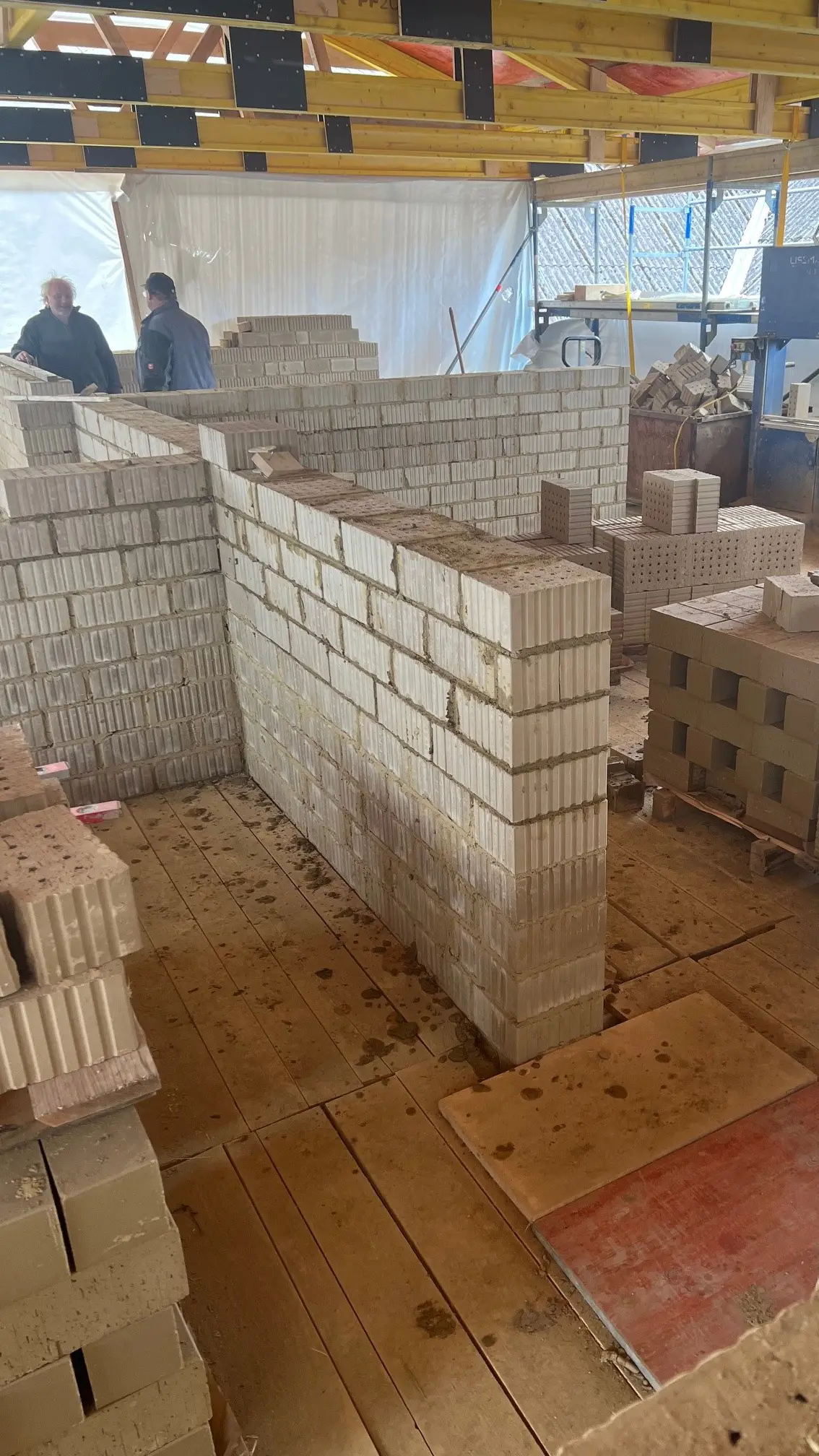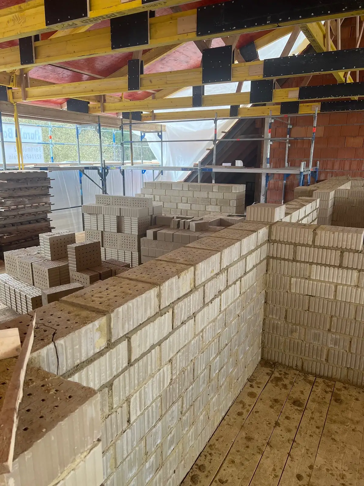 Hier entsteht ein manchmal herausfordernder, aber auf jeden Fall lohnenswerter Pionierbau. Belohnt werden der Bauherr sowie die späteren Nutzer durch eine top Ökobilanz, ein hervorragendes Raumklima und strukturreiche und damit ästhetisch ansprechende Wandoberflächen.