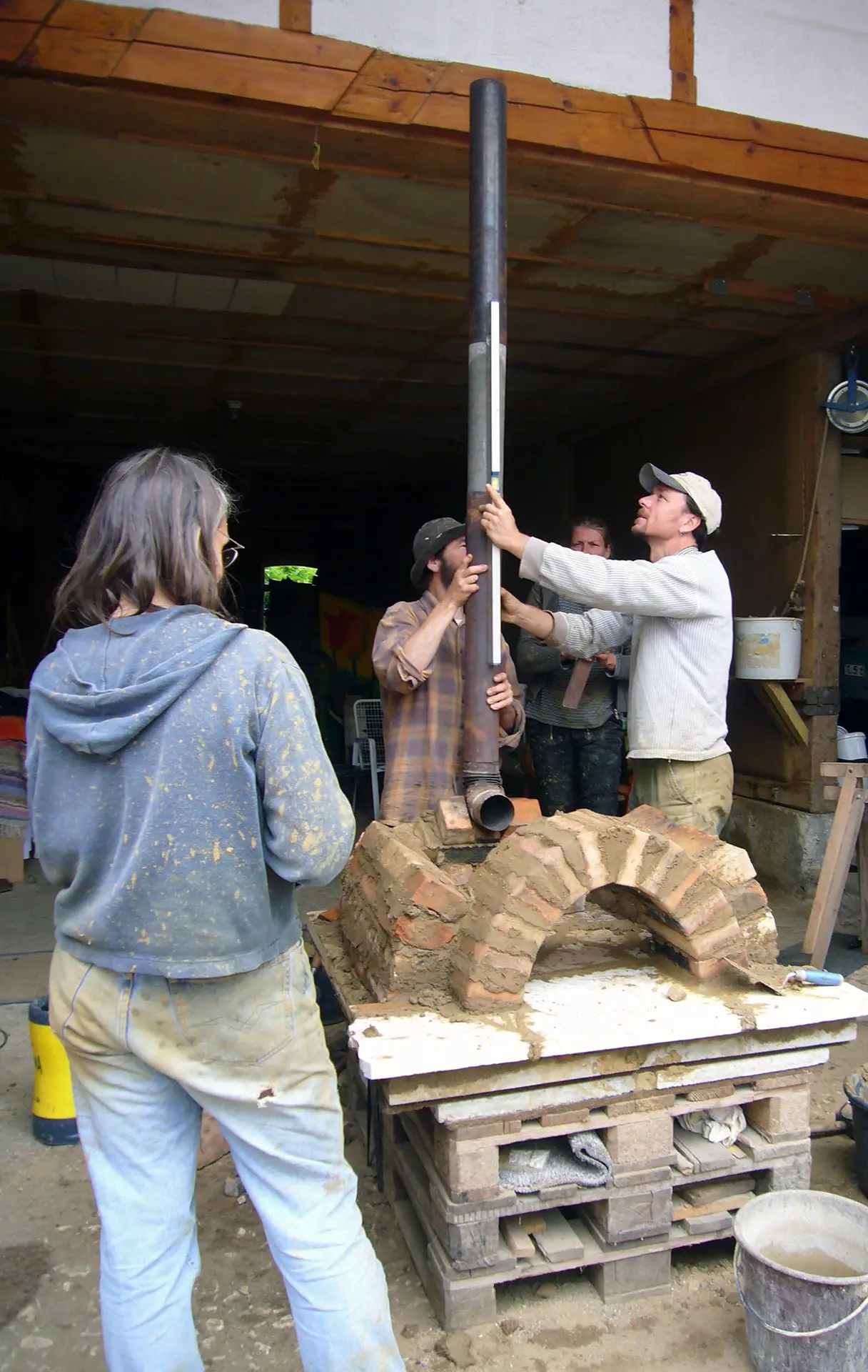- Sind 2/3 des Lehmofens gemauert, an die Ofenrohr-Öffnung denken.