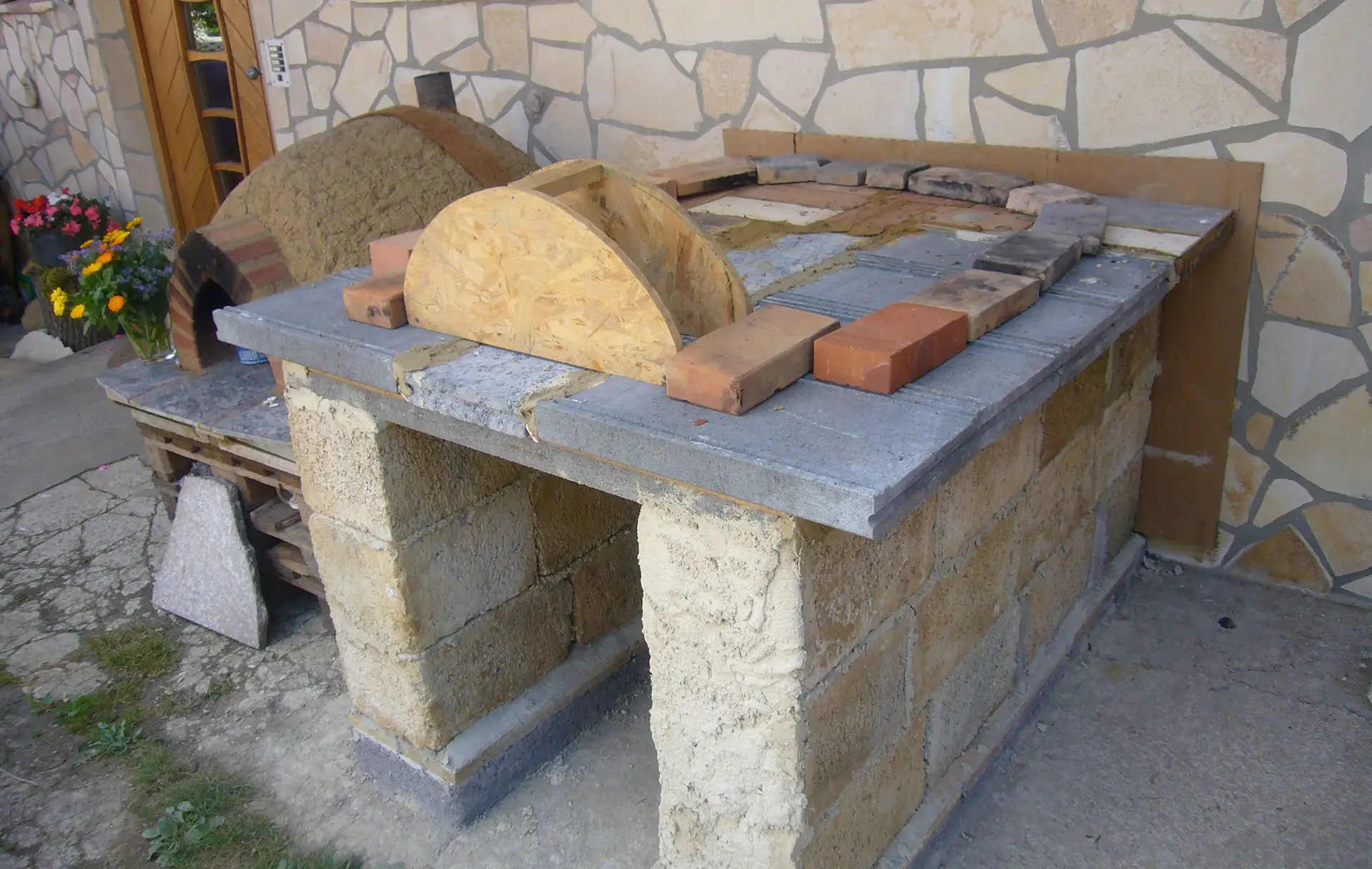 - ca. 1 m2 Terracotta-Fliesen/Granit/Schamotte o.ä. als Backgut-Einschubebene („Fußboden“). Sie müssen eben verlegt und oberflächenglatt sein