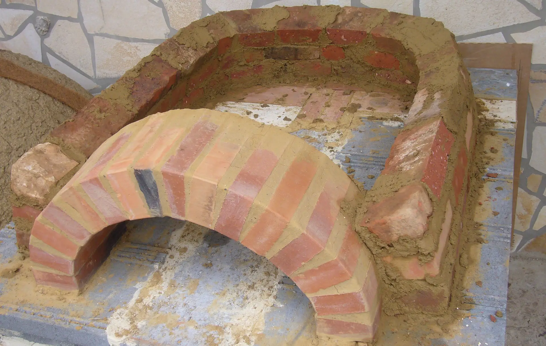 - Holzschablone für das Ofenportal (Mauerhilfe für das Portalgewölbe)