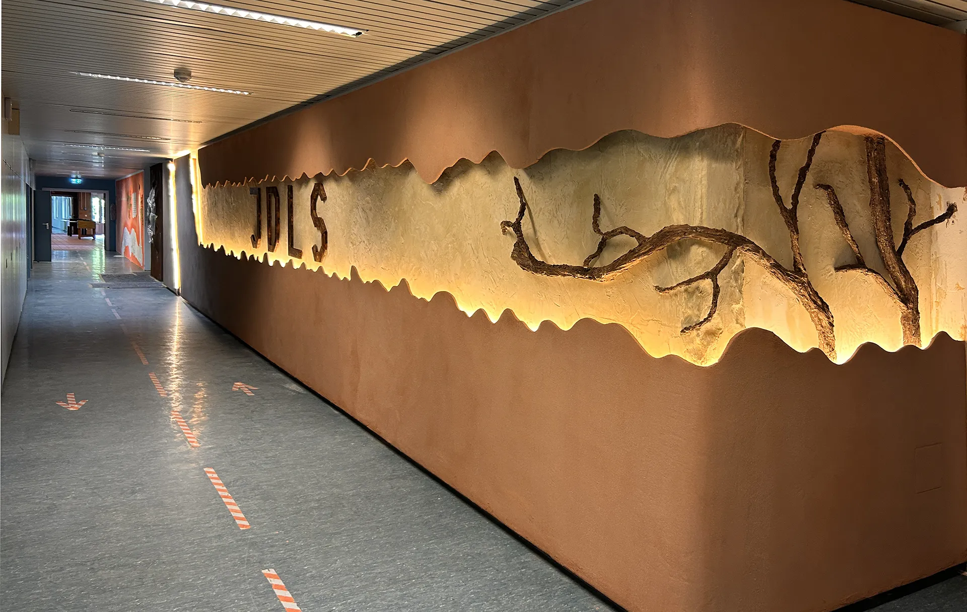 Gekrönt wurde das Ganze durch eine gezielte Beleuchtung, die die Texturen betont, die Tiefe hervorhebt und dem Raum eine atmosphärische Wirkung verleiht. Dieses Projekt hat unsere Werte auf beeindruckende Weise sichtbar gemacht – und bei den Schüler*innen einen bleibenden Eindruck hinterlassen.