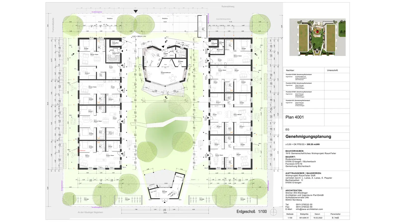| Planersteller | Stömer.Will.Weidinger Architekten und Ingenieure PartGmbB (LPH 1-4), Nürnberg, Michaela Stömer, www.sww-architekten.com und natürlich-baubio-logisch GmbH (LPH 5-8), Wendelstein, Ulrich Bauer, www.natuerlich-baubiologisch.de |
