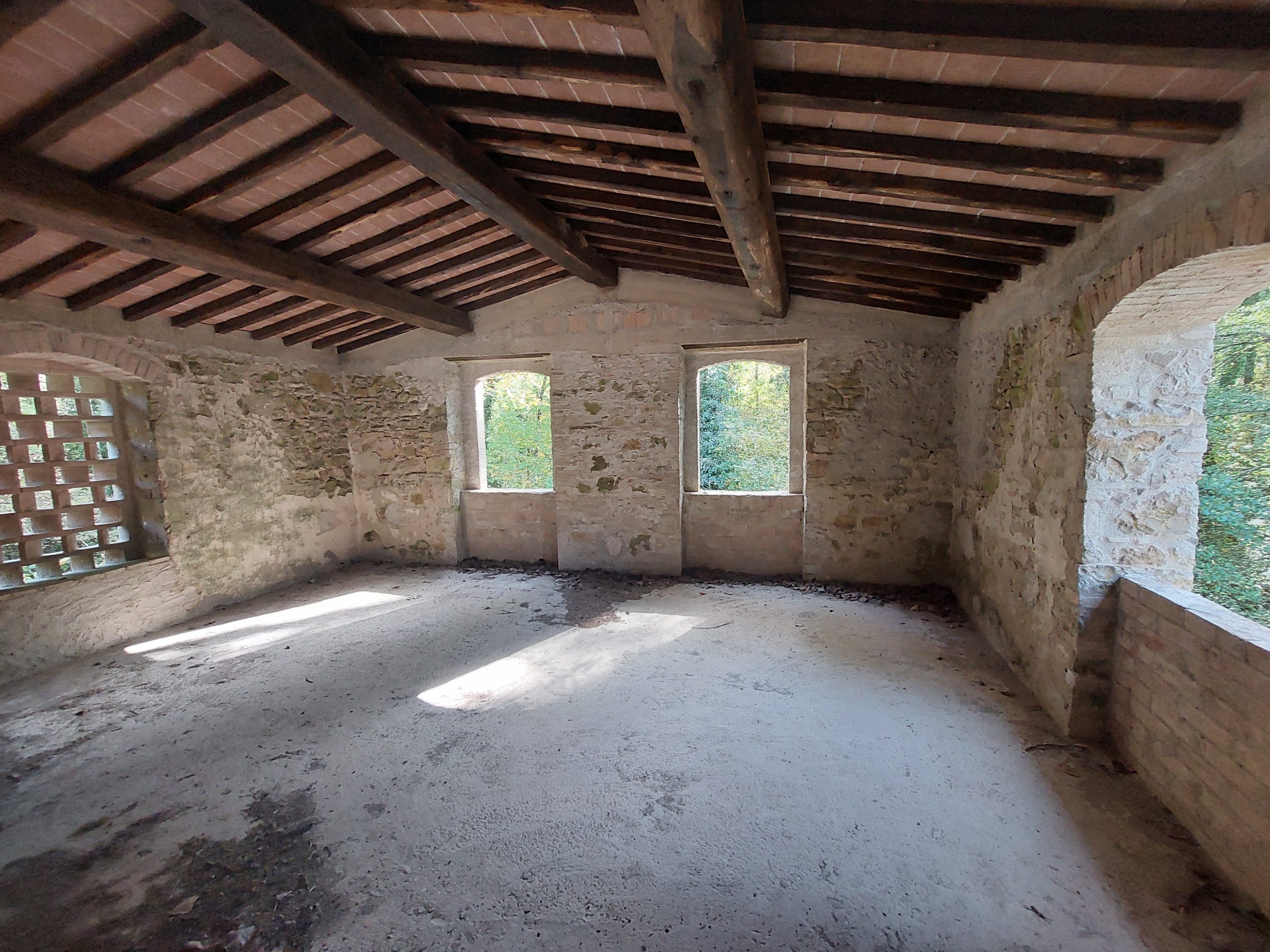 Die verlassene Mühle entspricht der traditionellen Bauweise des Chiantis. Das monolithische Natursteinmauerwerk aus Alberese (Kalkstein) und Galestro (Kalkstein-Schiefer), sowie die Fenster und Stürze aus Holz und aus Pietra Serena (hellgrauer Sandstein). Gebrannte Lehmziegel dienen als Dacheindeckung und Bodenbelag.